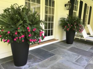 Seasonal color provides immediate impact within the landscape. Unlike shrubs, trees, and perennials that require time to mature, annual plantings deliver instant beauty and vibrancy. Thoughtfully designed seasonal installations also highlight focal points of a property—much like accessorizing a gown with jewelry—drawing attention to the most important architectural and outdoor features of a home.